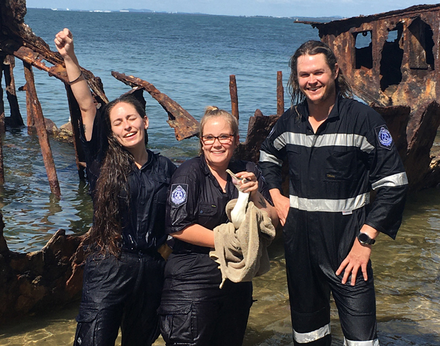 Another feat taken on by our Animal Rescue officers tells a very similar story to that of the bat. Perched on a rusted shipwreck, a cormorant wore its feathers, along with what seemed like 30 metres of fishing line.