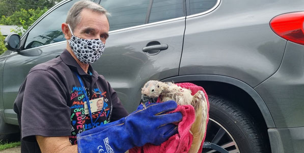 Above: A weather impacted cockatoo with beak and feather disease rescued Monday by RSPCA Volunteer Warren.